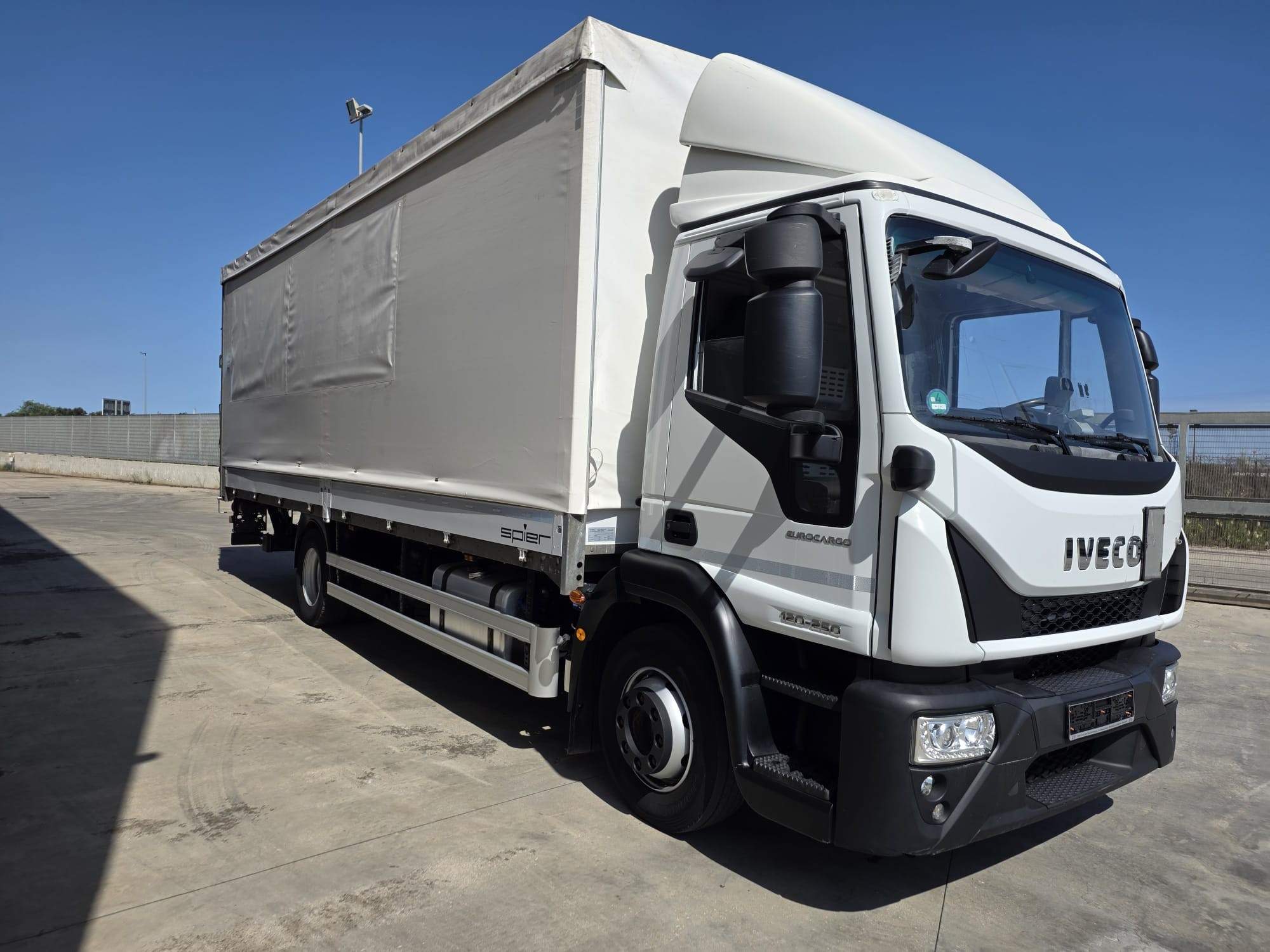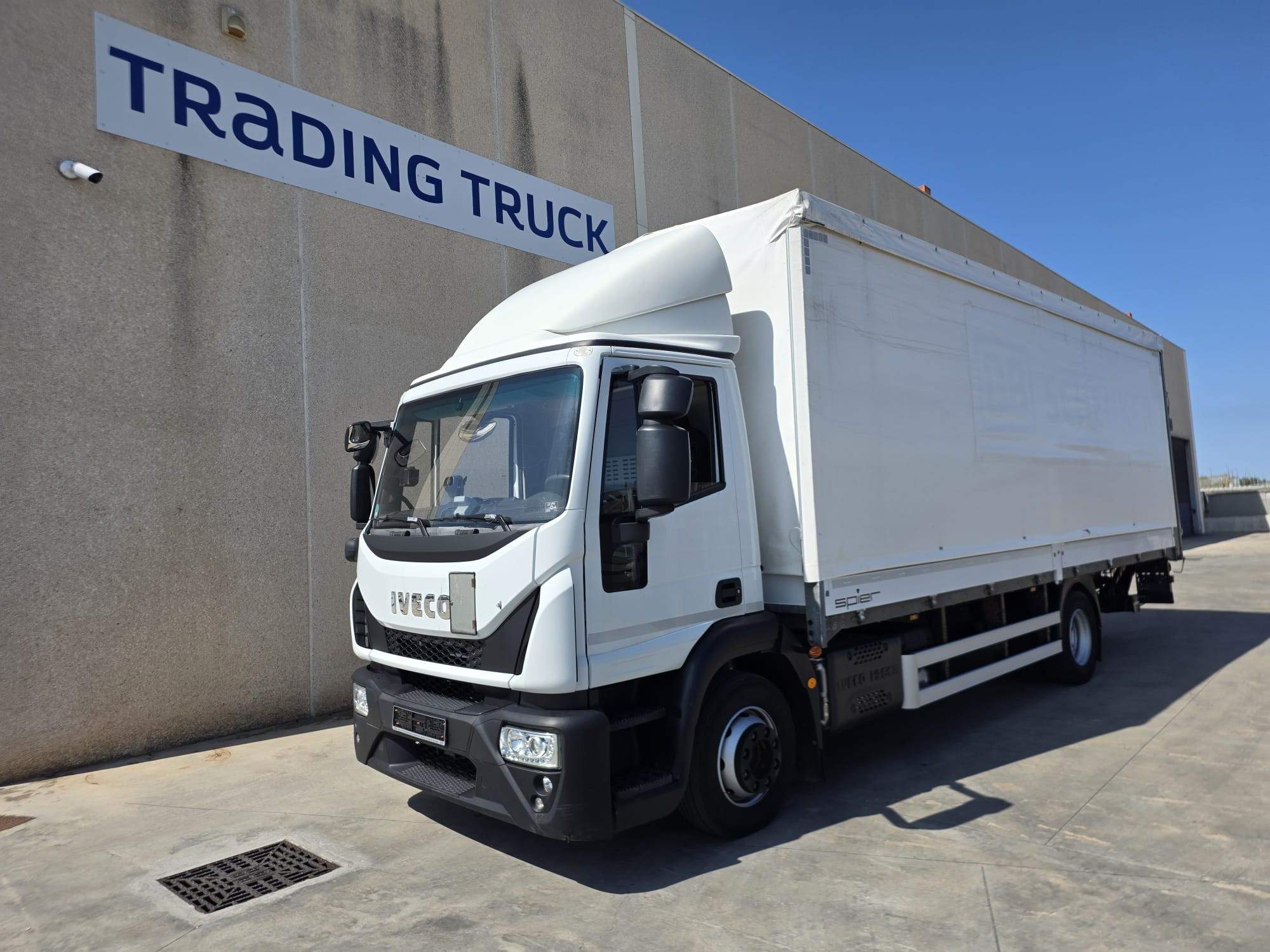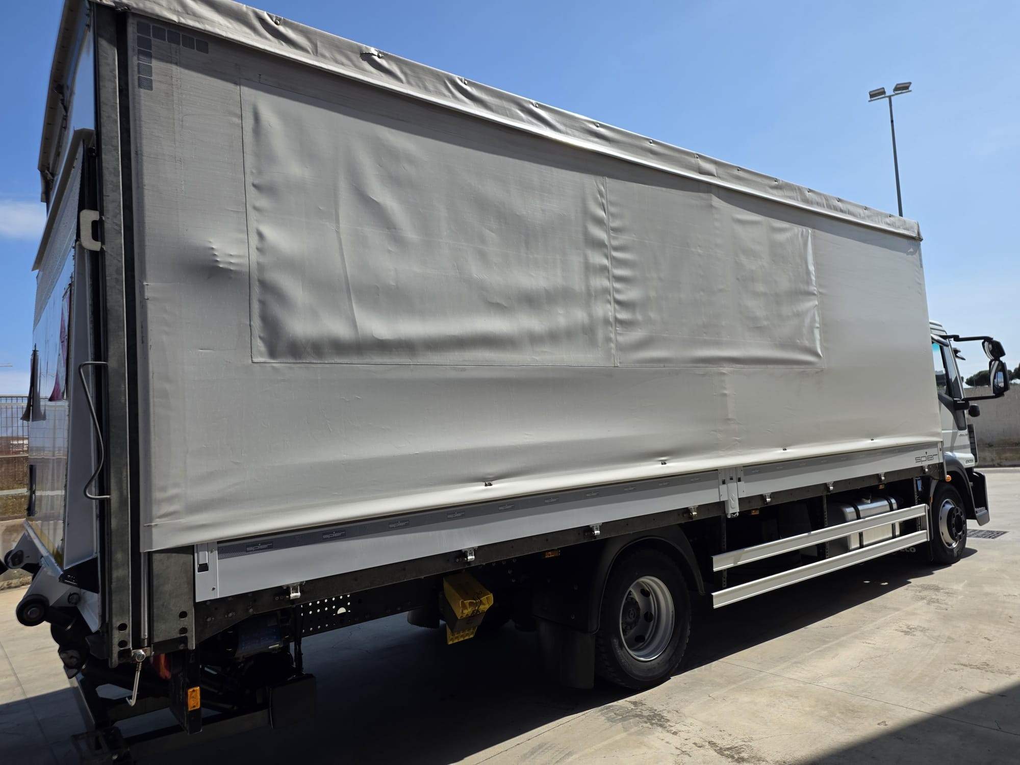cassone fisso con centina e telone, lunghezza 7.40 m., larghezza palettizzato, scorrevole ai lati, altezza 2.5 interna, completo di pedana in alluminio posteriore a battuta da 15 Q.