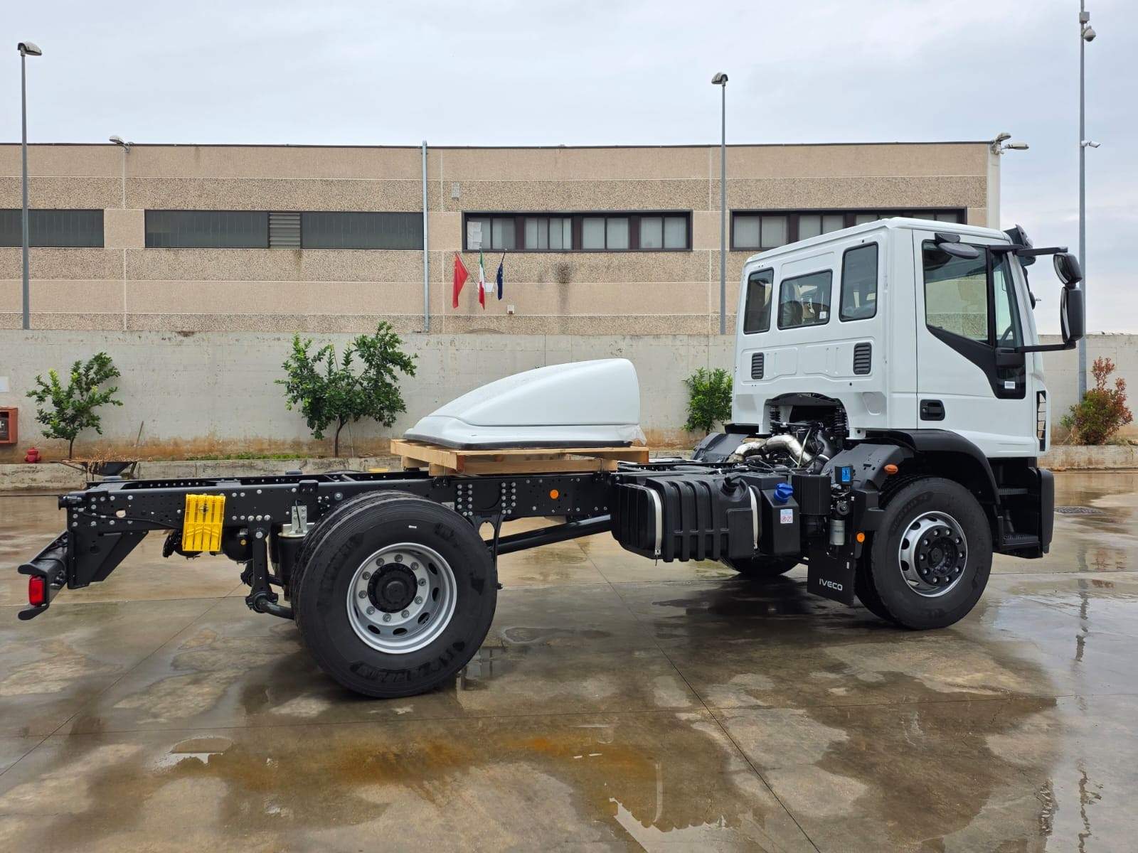 cabina corta, 3 posti in cabina, ADR tutte le classi, sospensione posteriore pneumatica, 1° asse rinforzato da 7.5 Ton, bloccaggio differenziale, cambio manuale ZF 9 marce, navigatore, telecamera posteriore, aria condizionata, sedile guida top aria riscaldato, visiera parasole, fendinebbia, pneumatici Michelin, tetto apribile, garanzia ufficiale IVECO