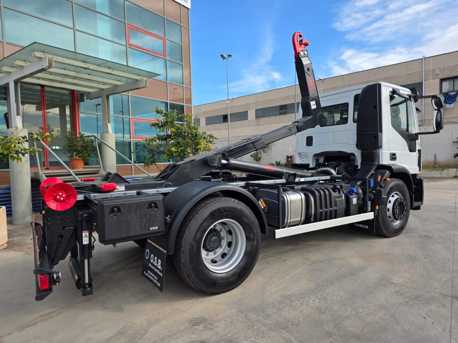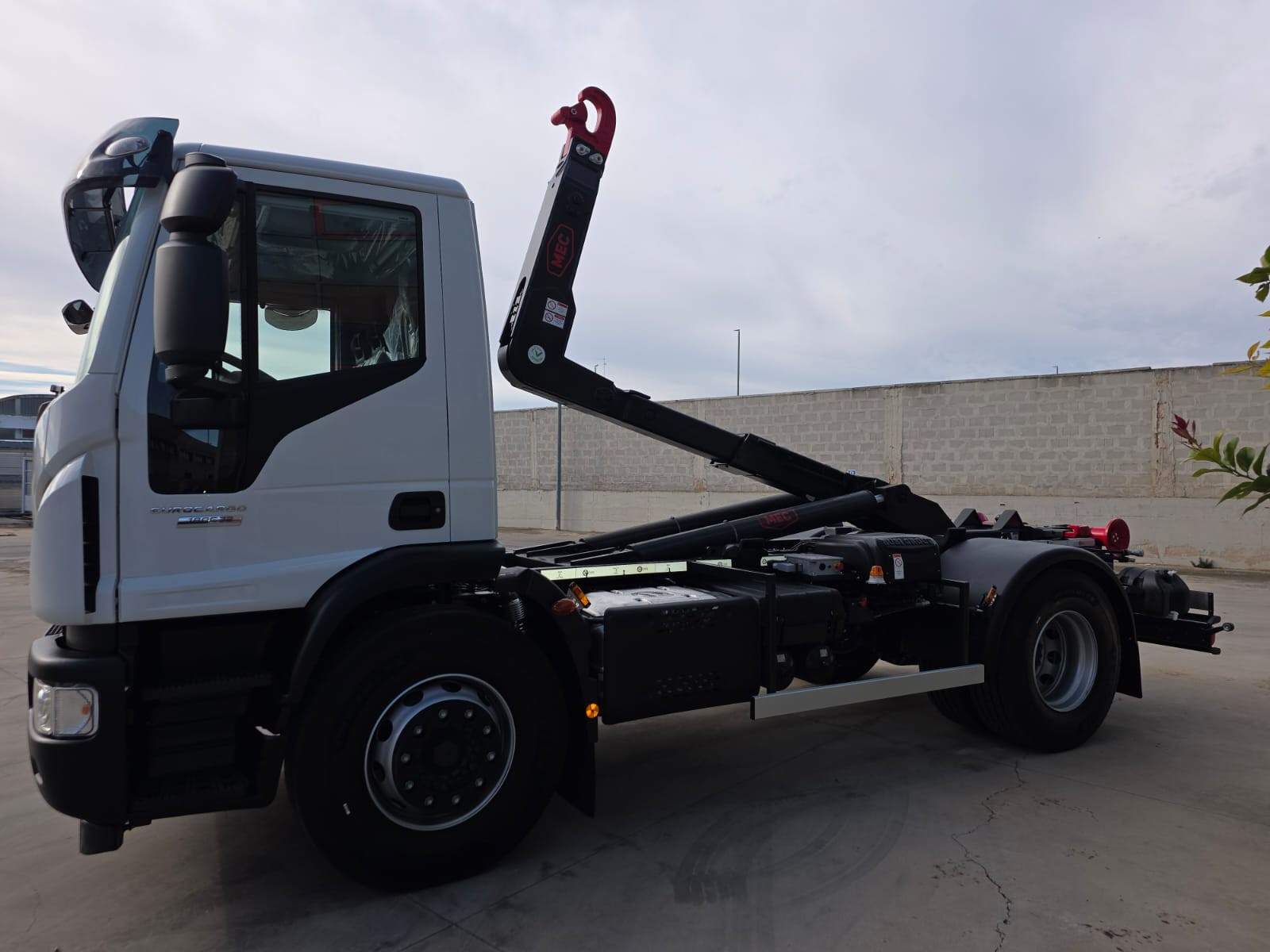 cambio manuale 9 marce, primo asse rinforzato 7.5 ton, bloccaggio differenziale, aria condizionata, massa rimorchiabile, balestre rinforzate, visiera parasole, navigatore, telecamera posteriore, vetri e specchi elettrici, allarme sonoro con chiusura centralizzata, PTO e presa di forza IVECO, massa rimorchiabile