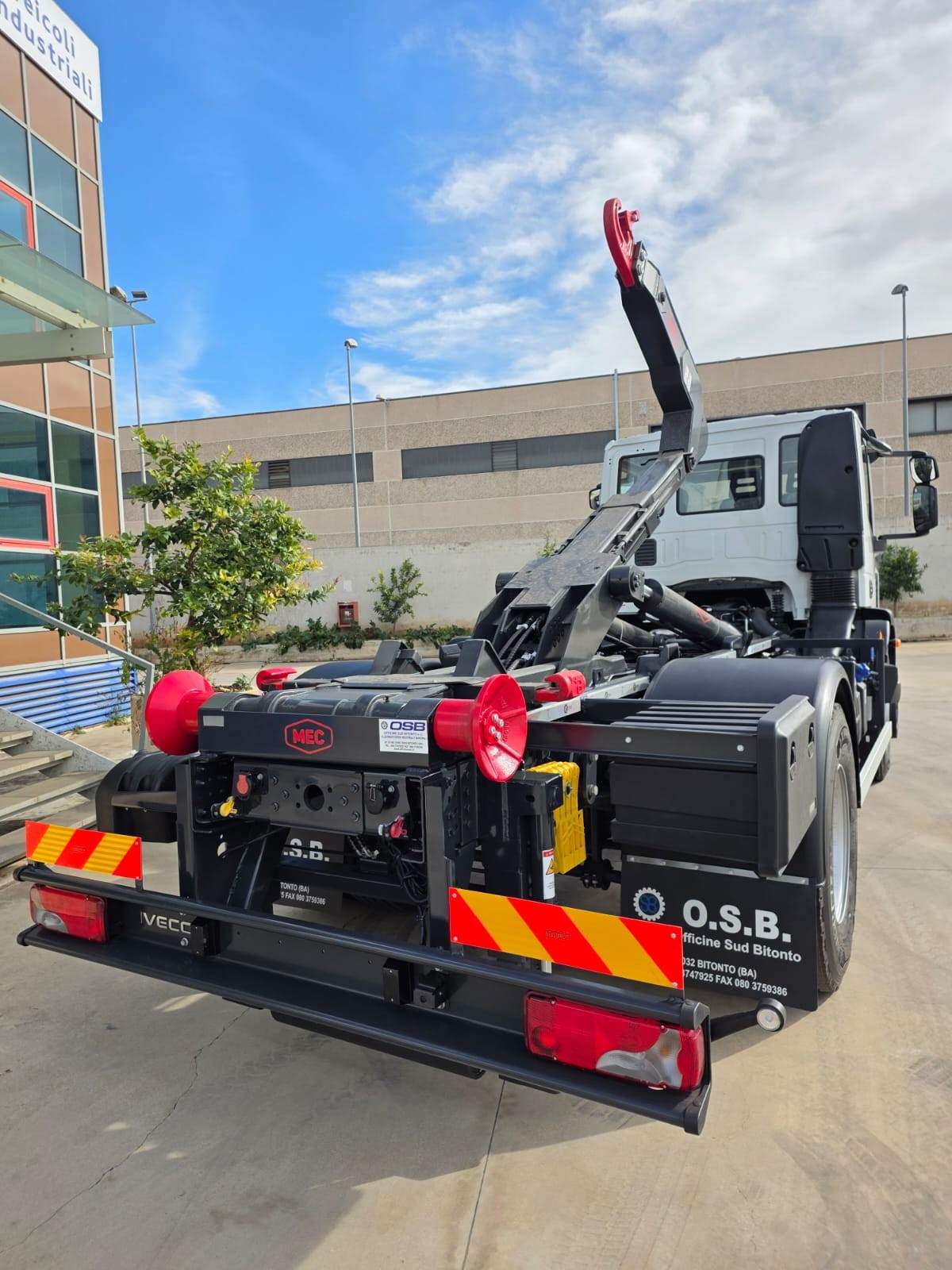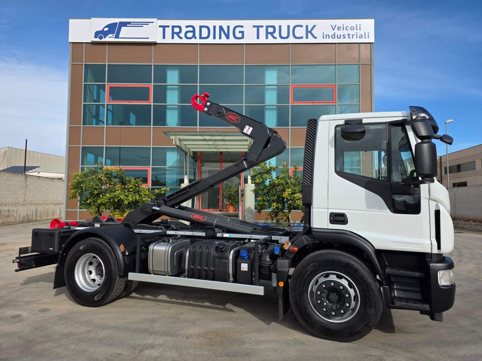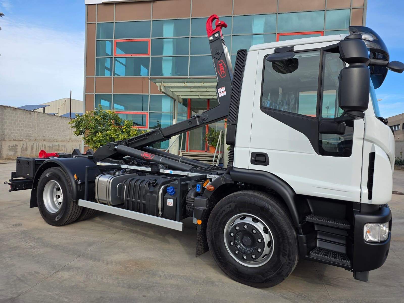 impianto scarrabile nuovo MEC da 18 TON, con brandeggio, rullo in verticale, impianto idraulico cassa gru e rimorchio