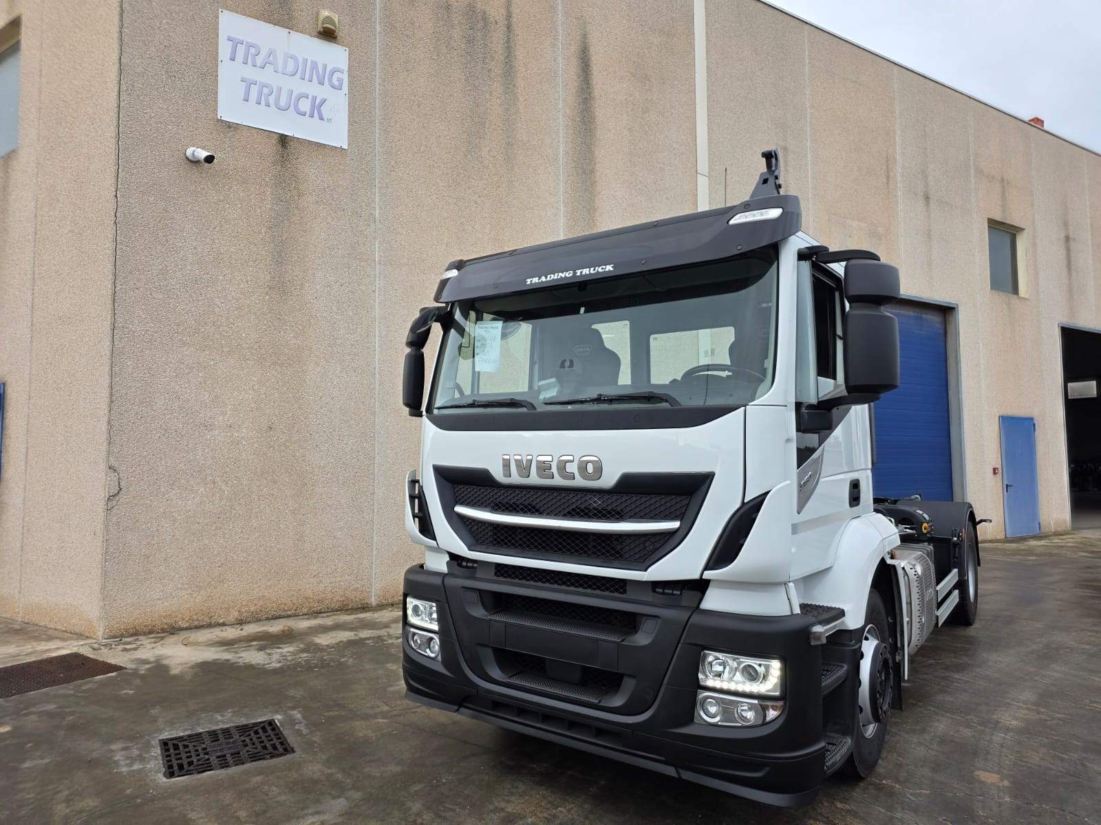 cabina corta, tetto basso, cambio automatico ZF 12 marce, intarder, retarder, aria condizionata, bloccaggio differenziale, 1° asse da 8 Ton, navigatore, gommato 80%, massa rimorchiabile 26 Ton