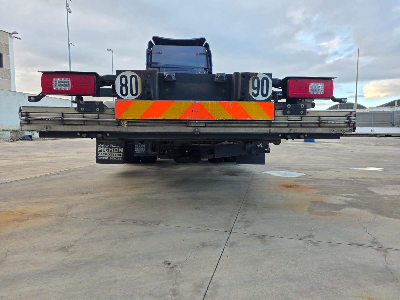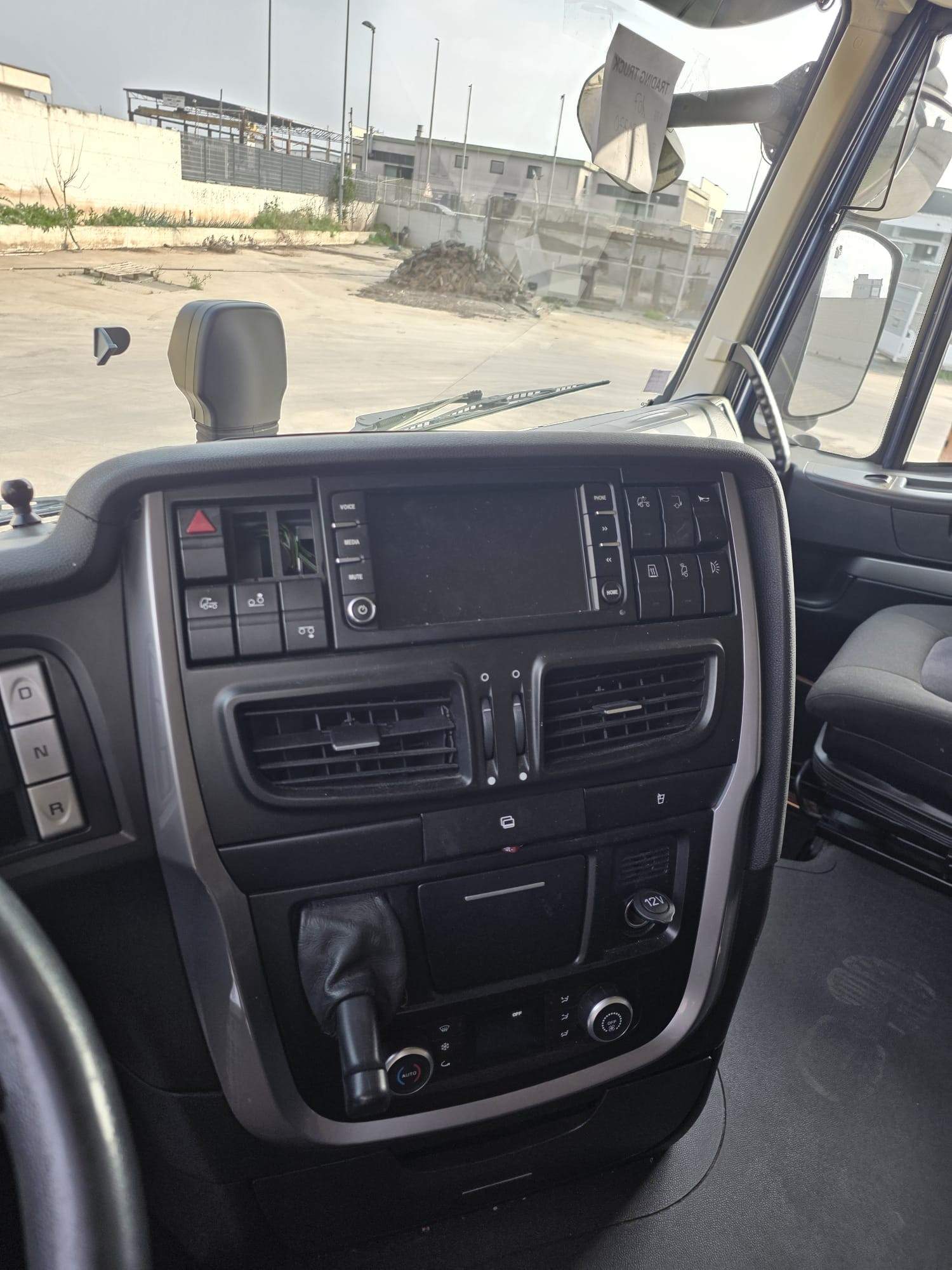 cambio ZF automatico, intarder, retarder, full pneumatico, aria condizionata supplementare da fermo, cerchi in lega, webasto, frigo, navigatore, portacontainer con pedana retrabile da 20 Q., attacco biga