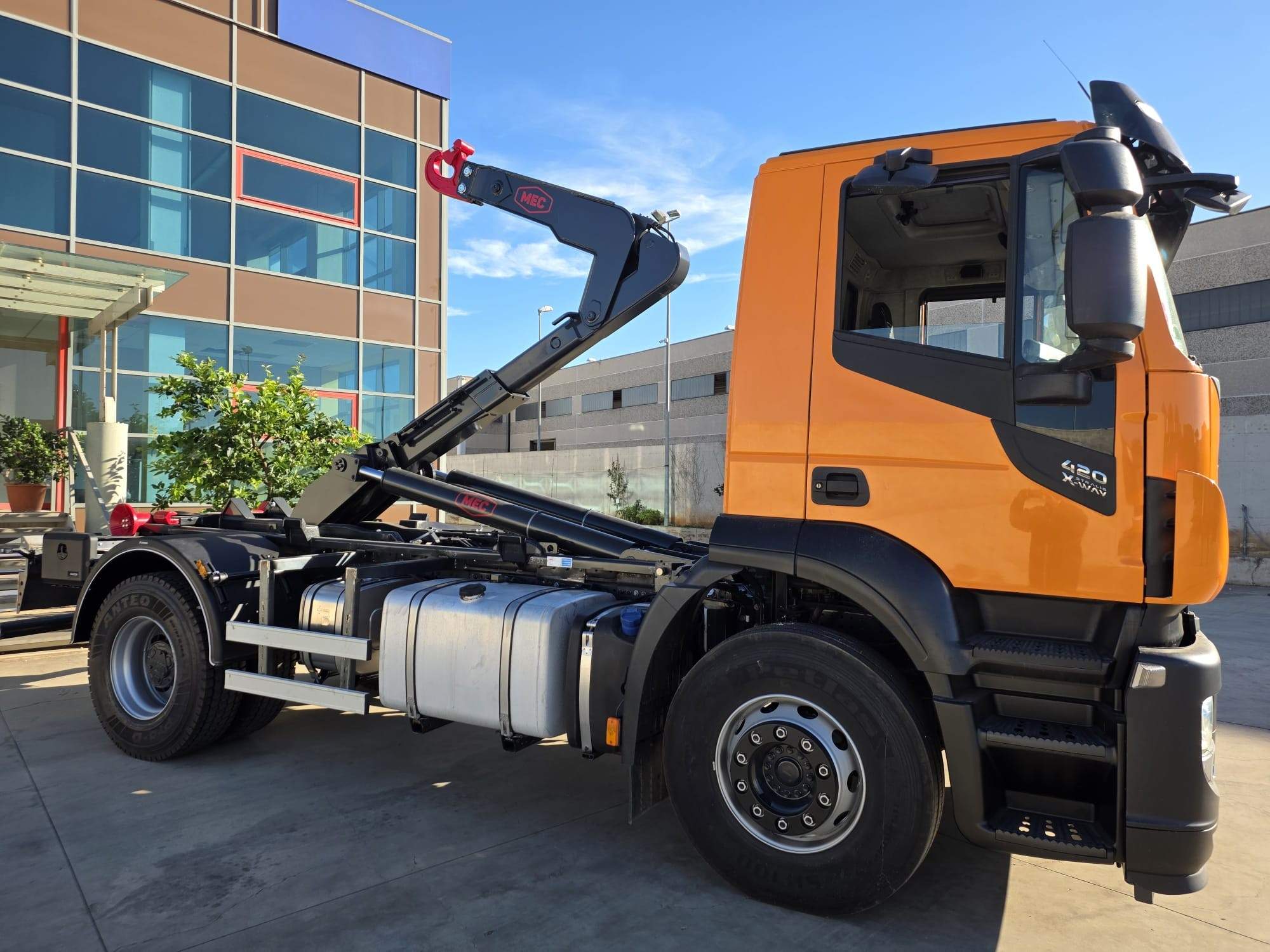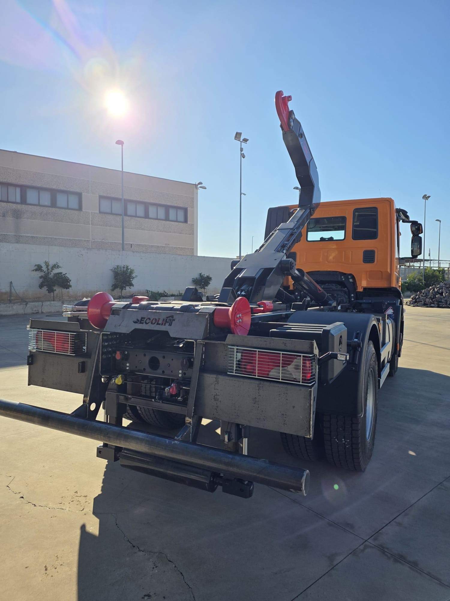 impianto scarrabile nuovo marca MEC da 18 Ton, con rullo in verticale, brandeggio, impianto idraulico per rimorchio e casse gru