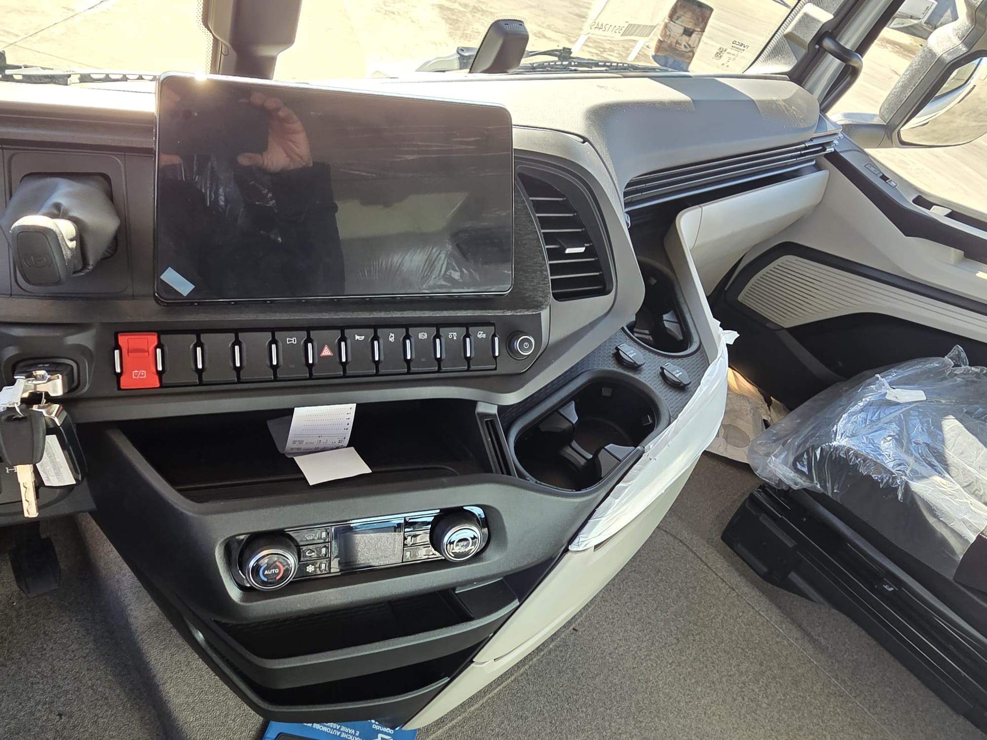 Adr tutte le classi, Frigo, secondo cassetto accanto frigo, Cambio automatico, Interder-Retarder, Retrocamera, Aria condizionata, Aria supplementare da fermo, Webasto, Radio car play Android, Navigatore, Visiera parasole, Fendinebbia, Sedile guida e passeggero aria, 1° asse da 8 ton, Predisposizione PTO, 2 cunei, Full optional