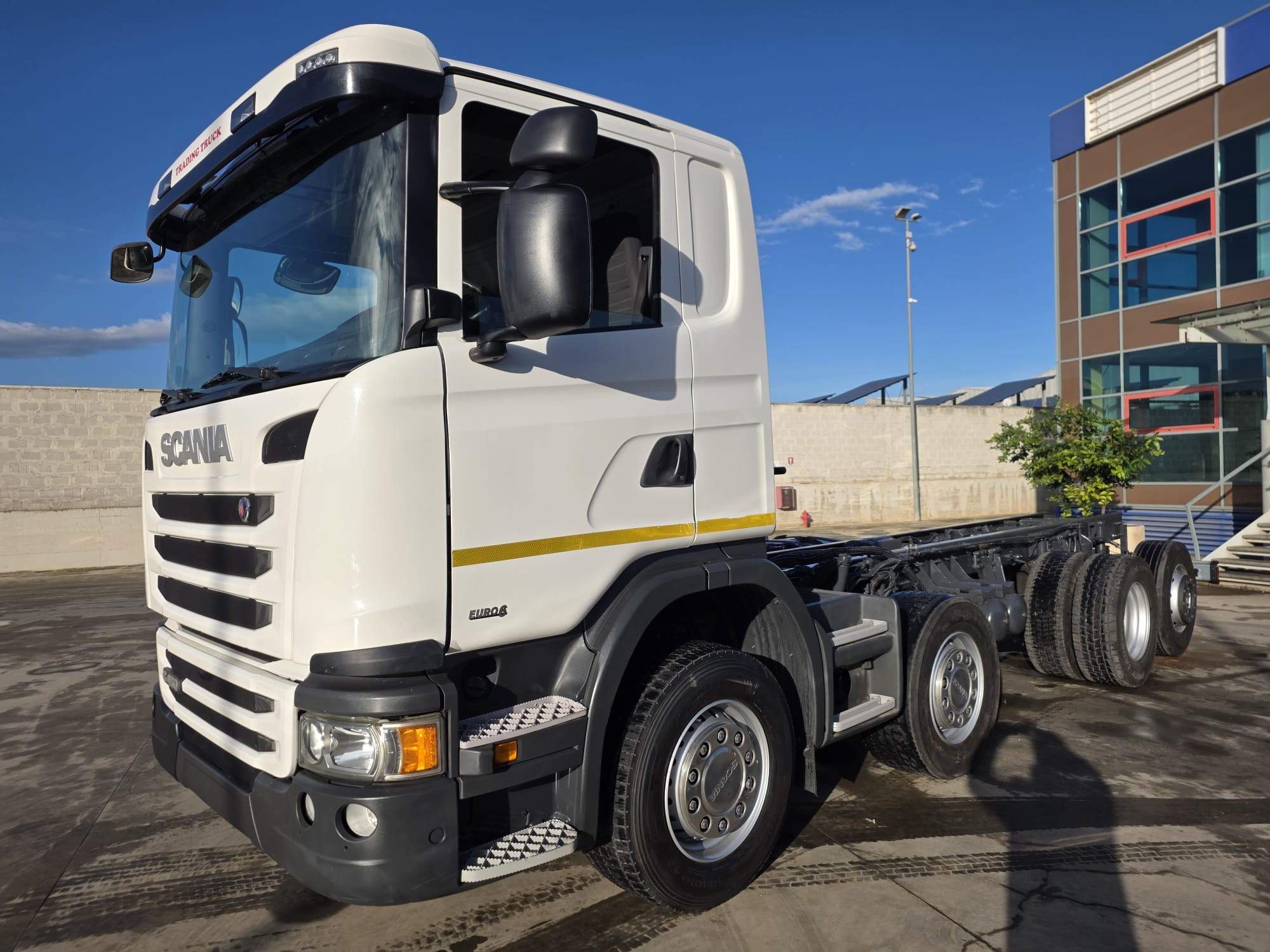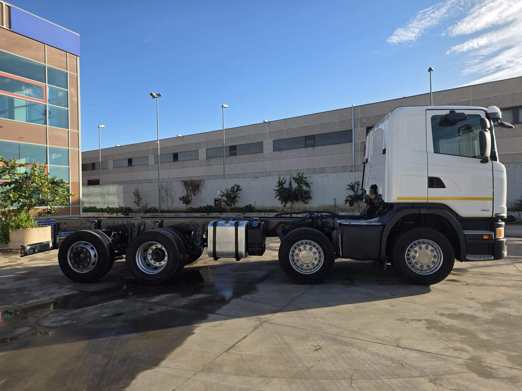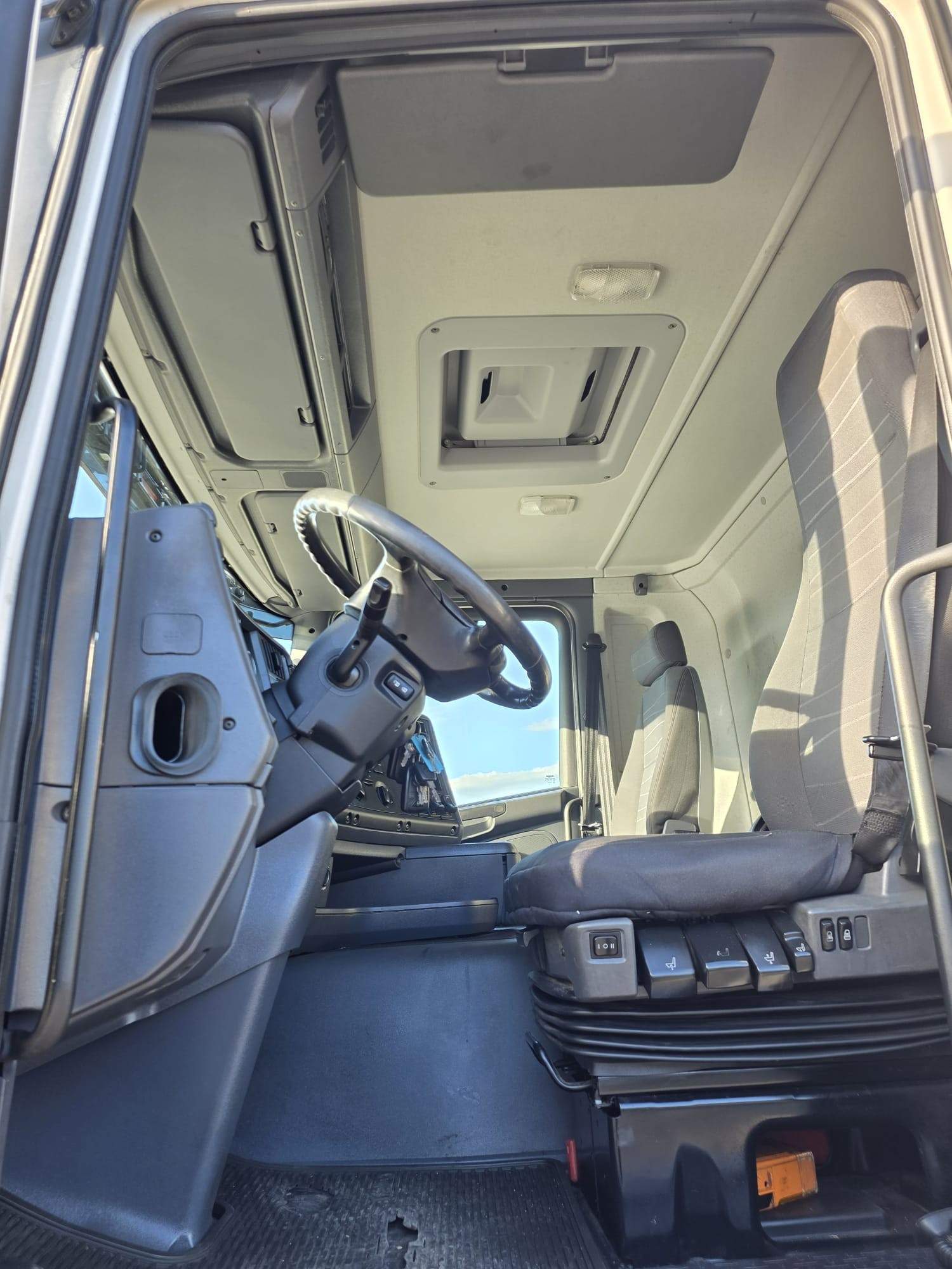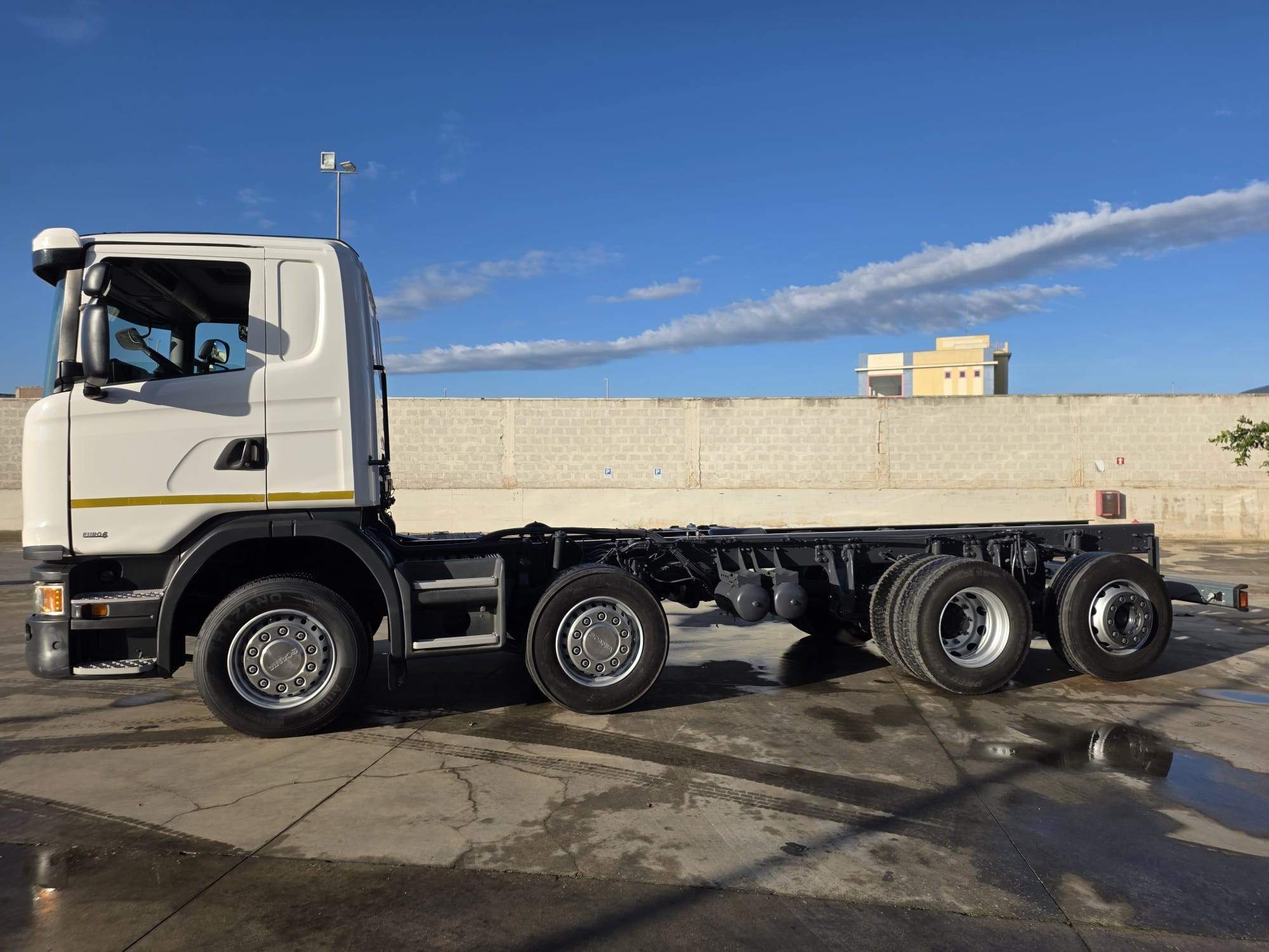 cabina corta, tetto basso, cambio automatico, PTO per presa di forza, 1°-2° asse da 8 Ton, full pneumatico, intarder, retarder, bloccaggio differenziale, aria condizionata, 1°-2°-4° asse sterzante, 4 assi.